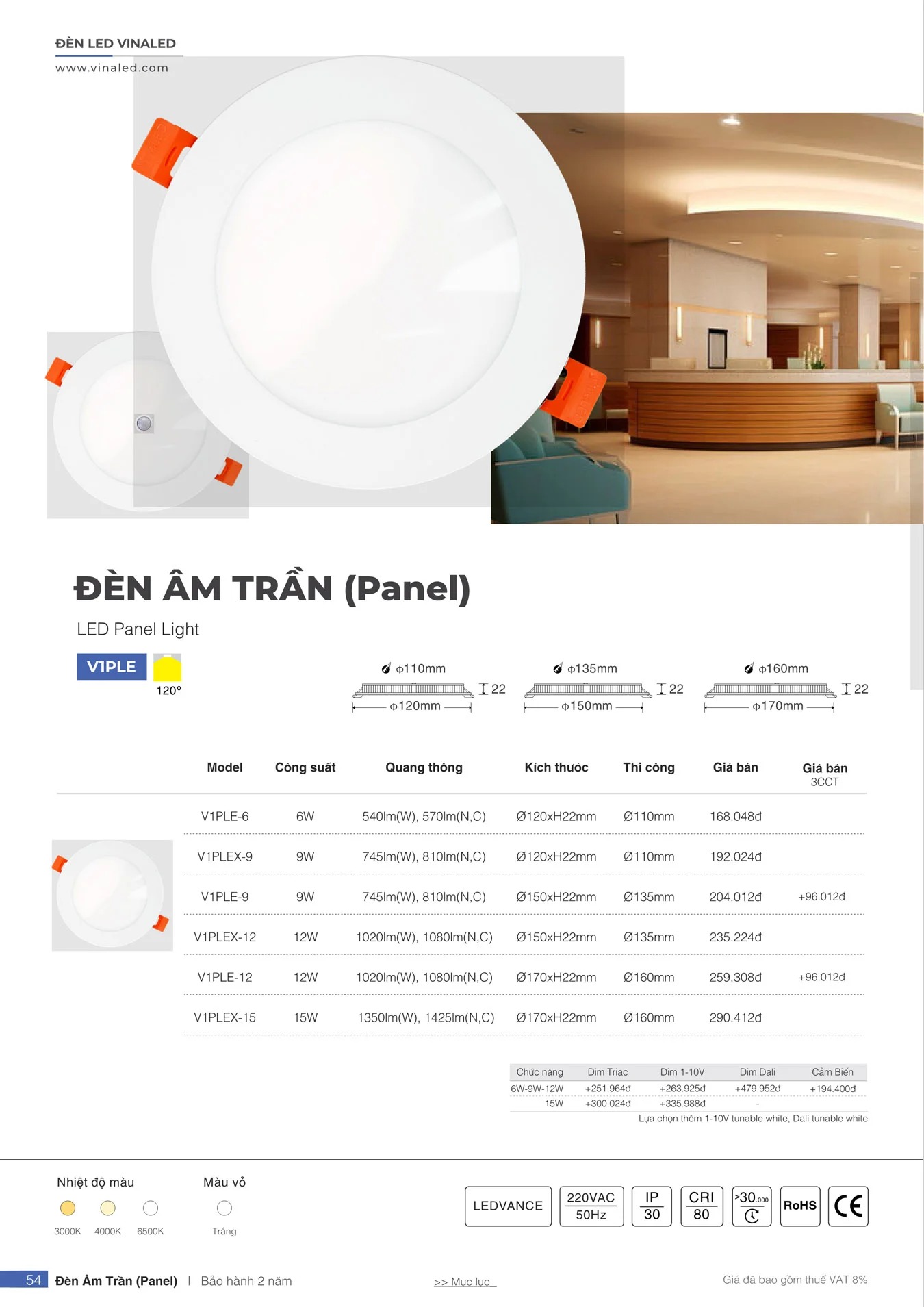Đèn led downlight âm trần 6W V1PLE-6/PL-EW6 VinaLed (khoét lỗ Ø110mm)