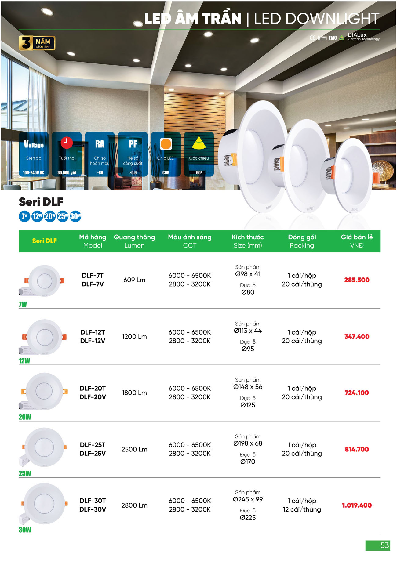 Đèn led downlight âm trần 7W,12W,20W,25W,30W Series DLF MPE