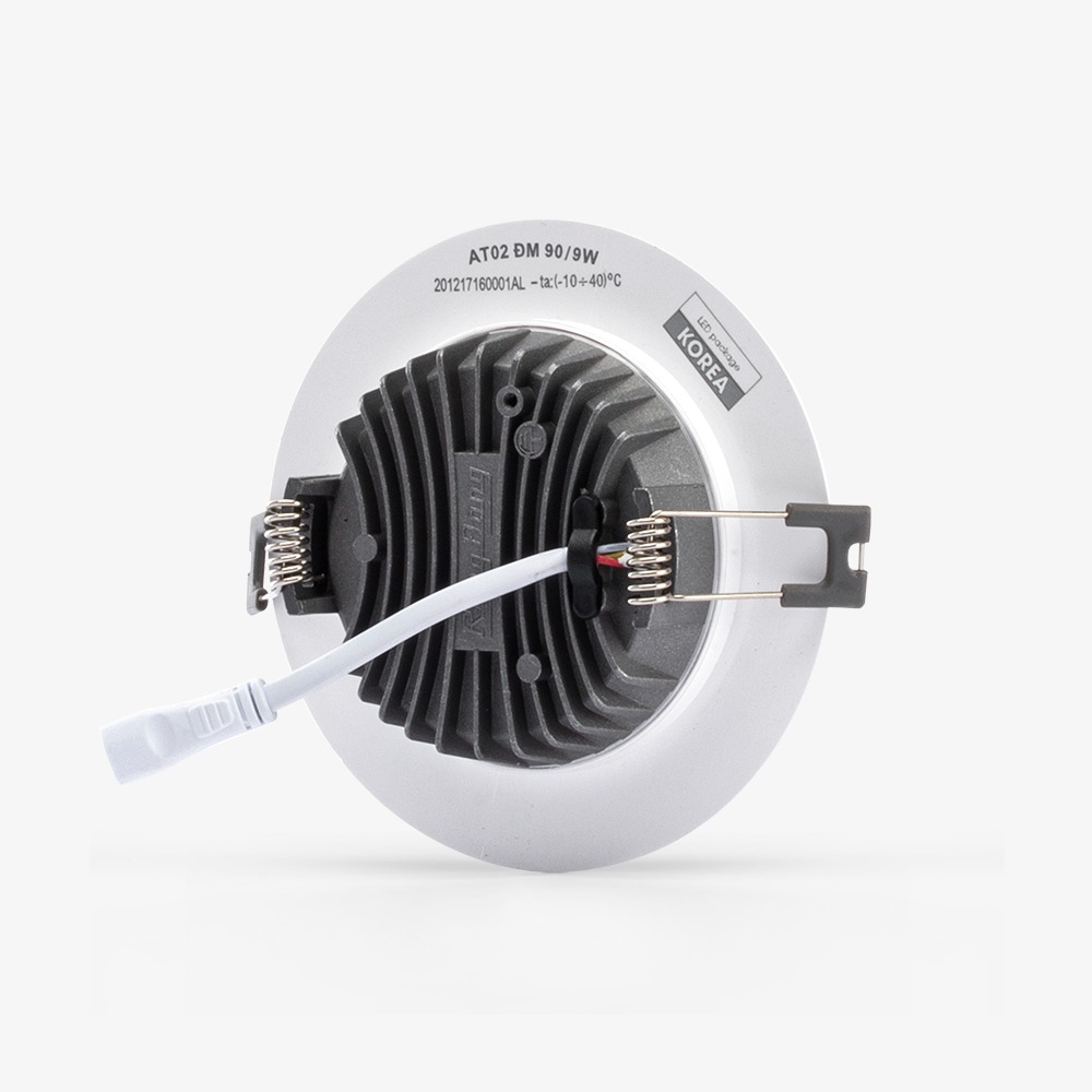 Đèn led downlight đổi màu AT02 ĐM 9W Rạng Đông sử dụng chip LED Hàn Quốc có hiệu suất sáng cao, tiết kiệm 53% điện năng thay thế đèn downlight compact 15W, giúp giảm chi phí hóa đơn tiền điện.