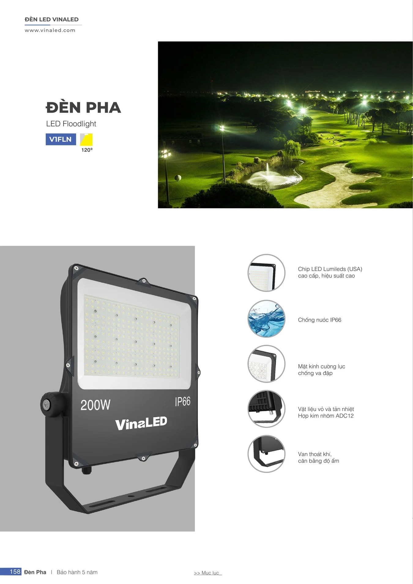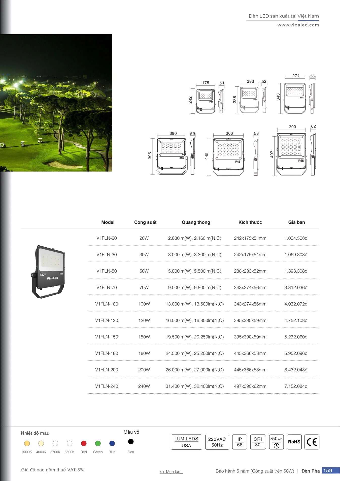 Tiêu chuẩn đèn led pha 20W V1FLN-20 VinaLed, Chip Lumileds USA