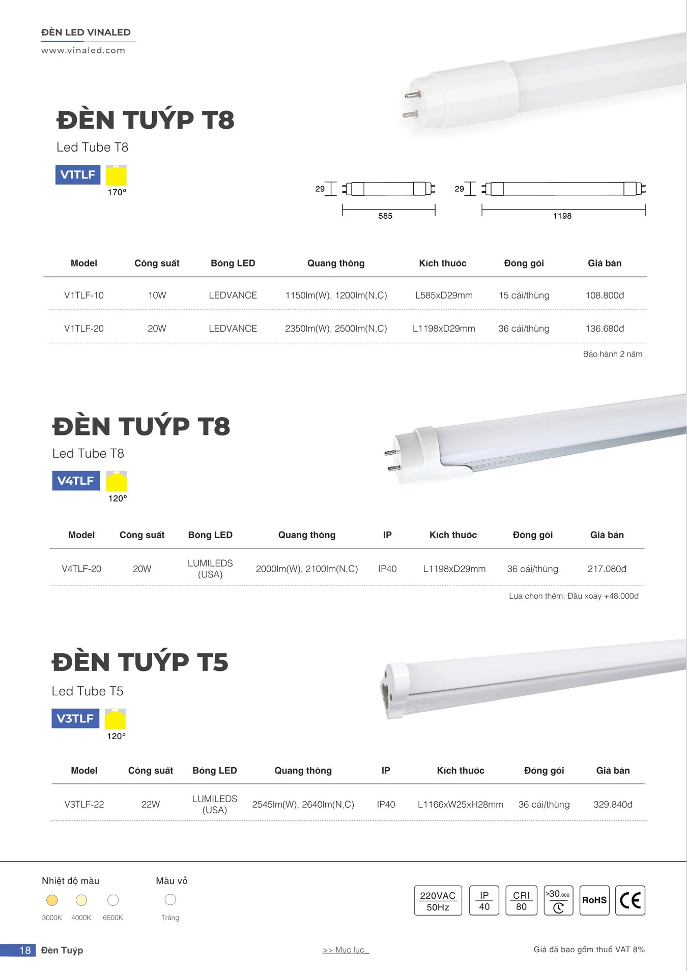 Đèn led tuýp nhôm 1m2 T8 20W V4TLF-20/TL-A20 VinaLed