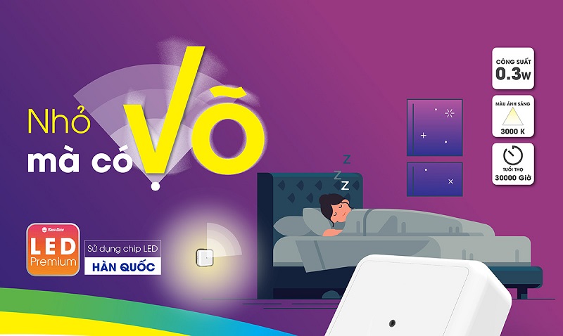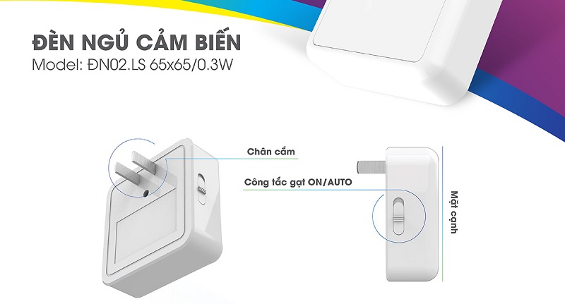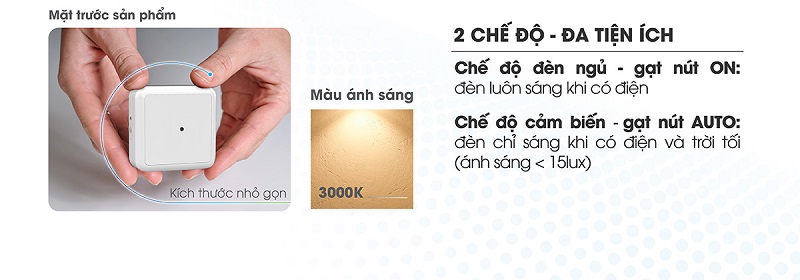 Tính năng đèn ngủ cảm biến (ĐN02.LS 65x65/0.3W)
