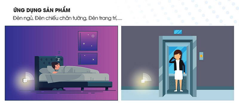 • Ứng dụng: Sử dụng làm đèn ngủ, đèn chiếu sáng chân tường...