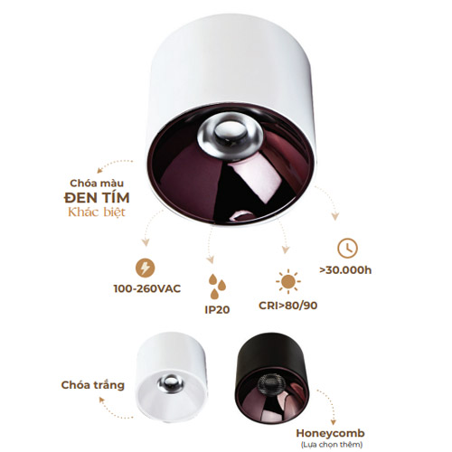 Quang thông: 1270lm(W), 1380lm(N,C)