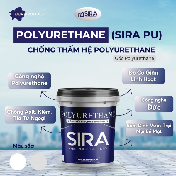 Sơn chống thấm – SIRA P900 là hợp chất dạng polyurethane có nhiều ưu điểm vượt trội như chịu axit, kháng kiềm, chịu tia tử ngoại, bám dính cao, kháng xé, đâm xuyên, nhanh khô.